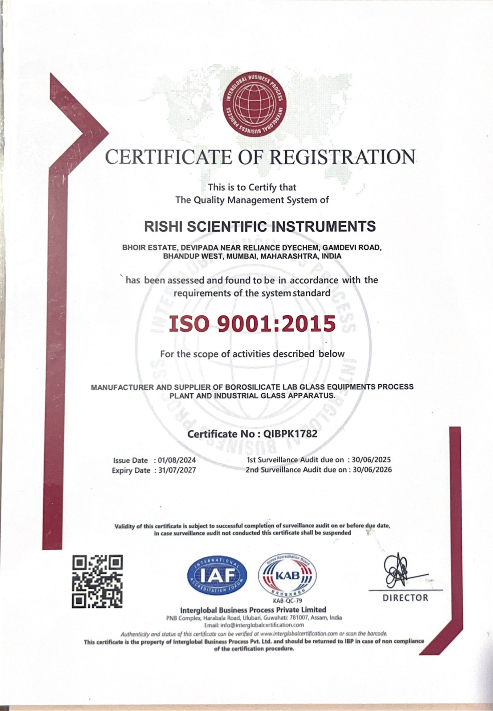 Rishi Scientific Instruments is proudly certified with ISO 9001:2015, demonstrating our commitment to maintaining the highest standards of quality management and operational excellence. This internationally recognized certification reflects our dedication to consistent product quality, customer satisfaction, and continuous improvement. As a trusted manufacturer and supplier of borosilicate laboratory glass equipment, process plant systems, and industrial glass apparatus, we adhere to stringent quality control processes at every stage of production. Our ISO certification reinforces our promise to deliver reliable, durable, and precision-engineered solutions that meet global standards.